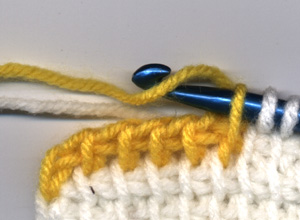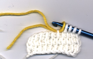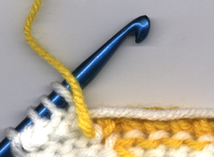 Then insert the hook in the next stitch and draw up a loop of the new color.