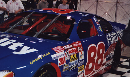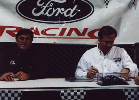Have you ever been to a Ford Fan Appreciation Event? This was our second opportunity to attend one, and I must say that the 1998 event (held at the Dallas Convention Center) was much more well organized. Parking was better, we were let into the convention center right away, and were quickly able to determine where we needed to go to get those highly sought driver autographs. When all was said and done, we wound up with 5 out of the 6 attending driver's autographs, missing Dale Jarrett only because his line was too long and eventually closed by the time we finished with the other five. All this was accomplished in just two and a half hours!