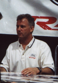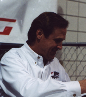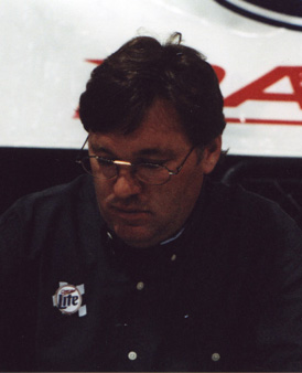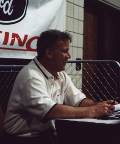 Robin Pemberton was very polite, but he looked really bored. He was there to sign autographs, but a lot of the fans just got Rusty's and not his. I really don't understand that. I wanted both. A racing team is more than a great driver in a great car, it's..., well, it's a team, and I don't see how you can be a fan of the driver and not a fan of the whole team. So here's Robin as we asked for his autograph and gave him something to do.