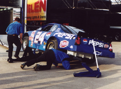 Just outside the Busch Garage, we spotted the #24 Pepsi car hauler and crew. I don't keep up with the Busch points all the time, so I'm assuming that team was pretty low in the point standings and so they didn't get a spot in the garage. I probably could have gotten a lot closer, but I was afraid I would get in their way, and I didn't want to risk getting tossed out.