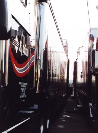 Mom and I planned to be at the track by 6:00 AM to watch the haulers go in. I've heard that the sight of them, all lined up, amber running lights glowing in the pre-dawn, is, well... awesome. So we wanted to be there, cameras in hand, to get lots of pictures. Unfortunately, my alarm didn't go off, I over-slept, and for some reason, I hadn't packed my gear up the night before, so we were running late, late, late. We were close to an hour late when we finally got to the speedway.