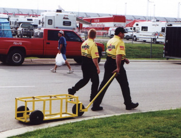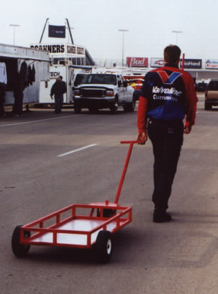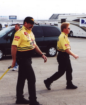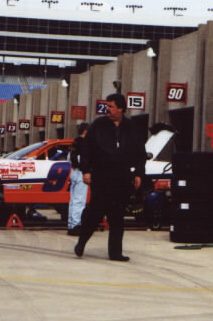 On down the road a bit, a few of the Winston Cup teams were heading out in search of ice. Here's one of the Valvoline crewmen.
