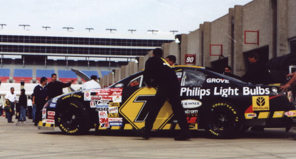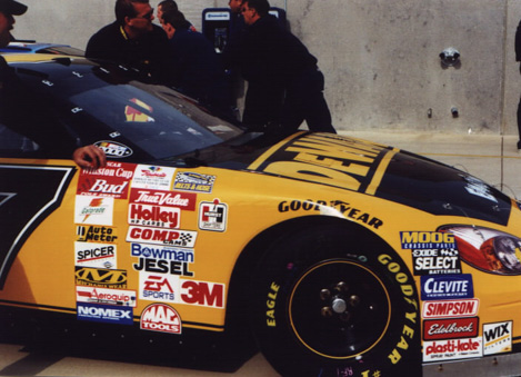 We had some pretty good seats for practice and qualifying. About row 17 or so, right near the start/finish line. Unfortunately, I must have mis-loaded my camera or something, because it felt like it wasn't advancing properly all day. I took two rolls of film sitting in those grandstands, and got basically nothing. Ward Burton brought his wrecked car to rest almost right in front of us, and the pictures didn't turn out! ARGH!