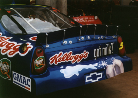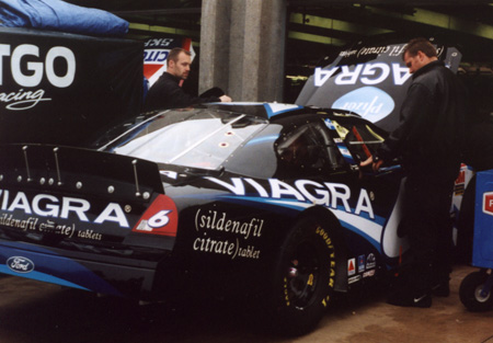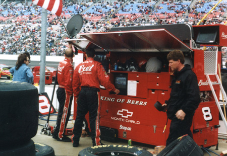 It must have been a Monday, because when I decided to put my money in the Bobby Labonte Coke machine, it was empty (guess everyone felt as sorry for him as I did). I tried three other machines before I got one to give me a Coke (Bill Elliott!). I stuck it in my pocket and headed off for Dale Jr.'s pit.