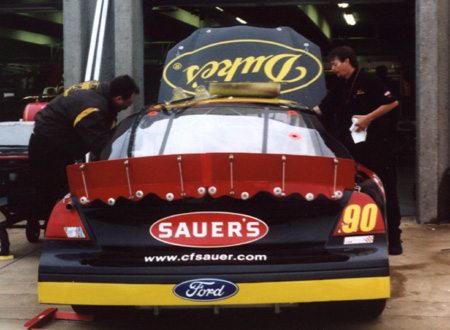 As soon as the car had left pit road, Tony Eury Sr. turned to the crew and said, "Who didn't bring the tire back?" When one of the rear tire changers 'fessed up, Tony Sr. said angrily, "Don't let that happen again! That's a 15-second penalty. Get that f-----g tire back over here where it's supposed to be!"