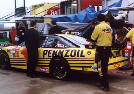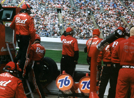 When I dropped my second Coke, I knew it was going to be a bad day. This time it cracked the bottle and started spewing. My quick reflexes allowed me to use my foot to roll it over before picking it up and throwing it away. Since there was hardly anyone left in the pits, I decided I wouldn't lose my place going to get another, but I wanted to wait until after the first pit stop.