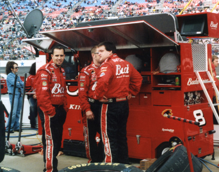 It must have been a Monday, because when I decided to put my money in the Bobby Labonte Coke machine, it was empty (guess everyone felt as sorry for him as I did). I tried three other machines before I got one to give me a Coke (Bill Elliott!). I stuck it in my pocket and headed off for Dale Jr.'s pit.